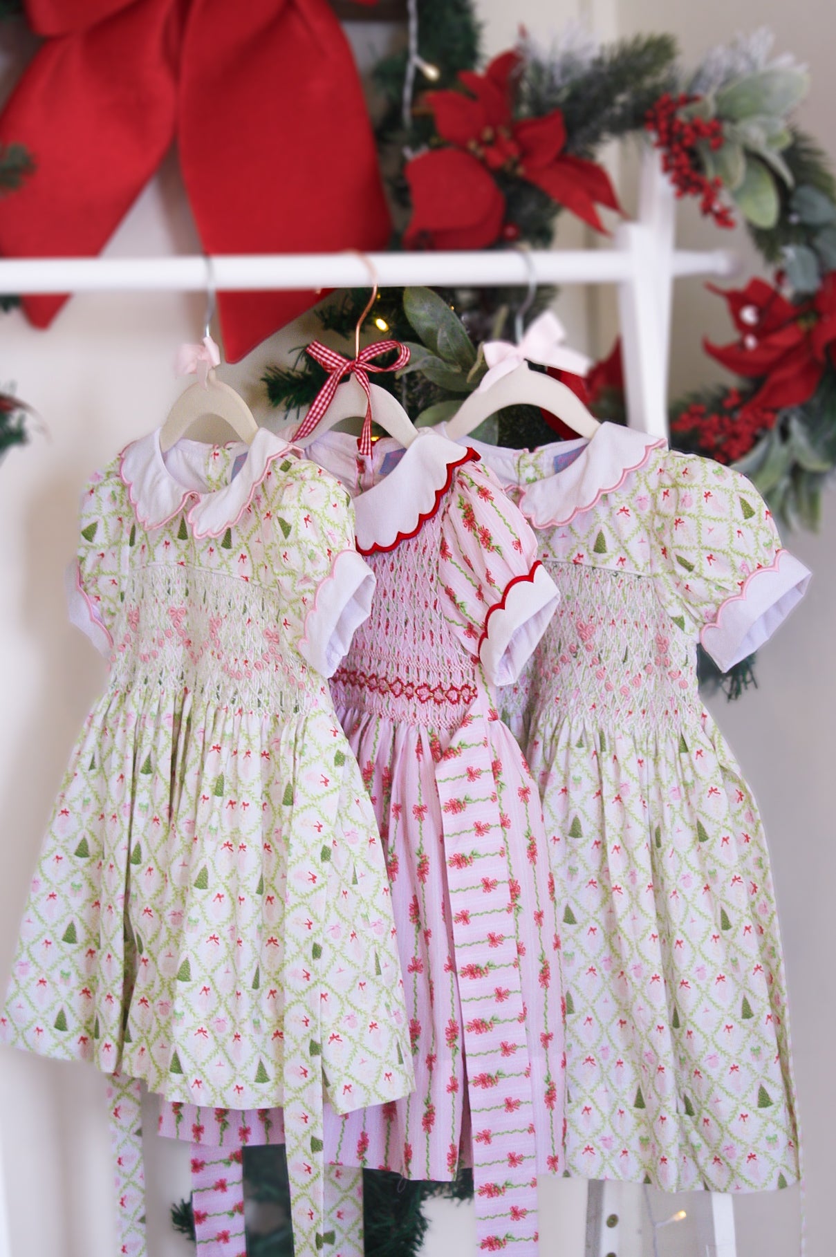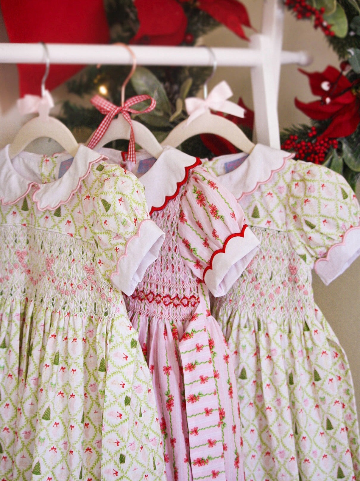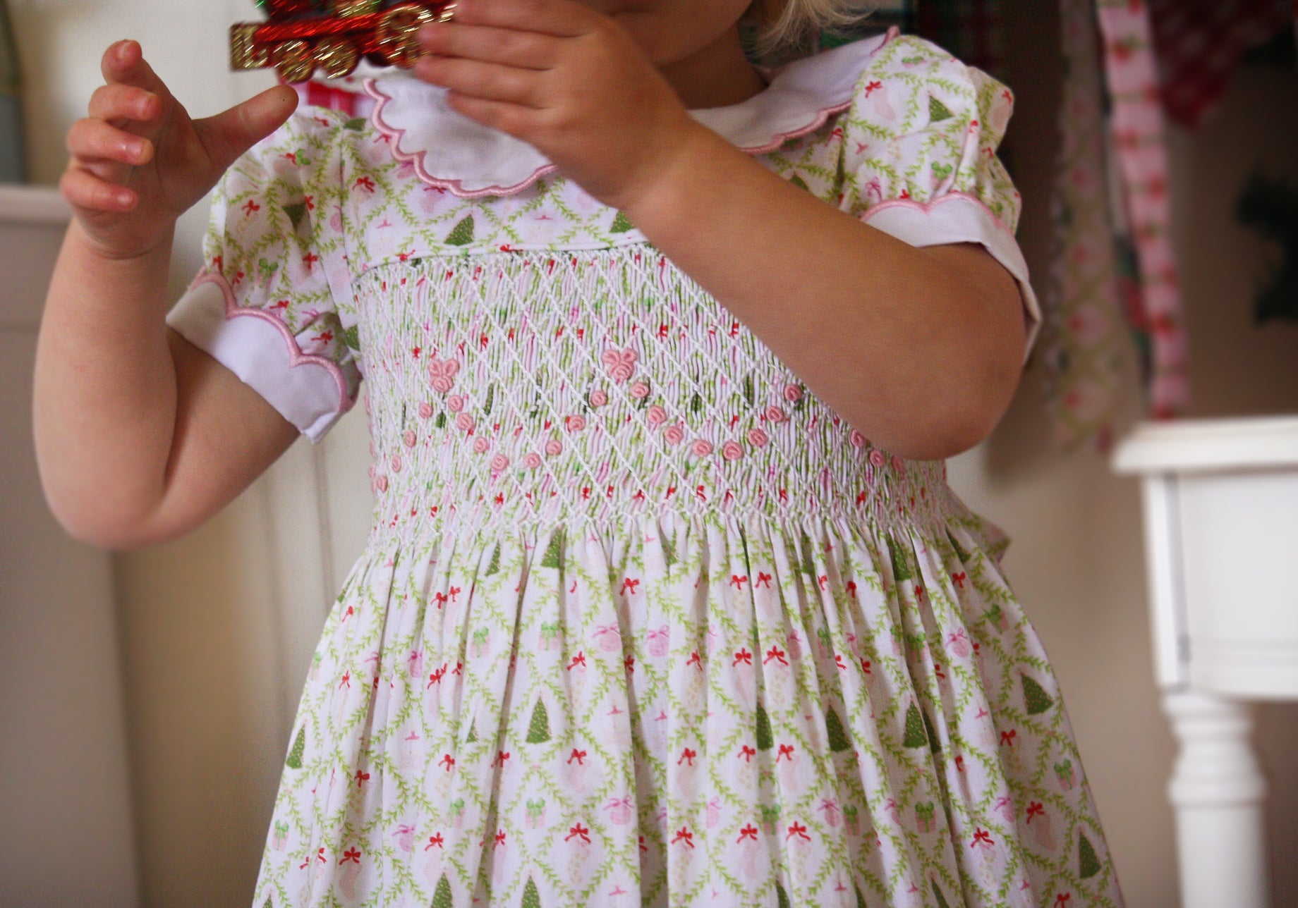 - Hand-smocked bodice with signature hand-embroidered bullion bow garland